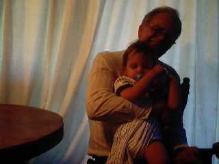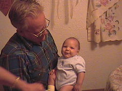 Tristan is quite a hand full but he won't let my dad put him down!! He just follows him all over. They talk and hang out durring all of our get togethers.