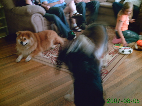 This is my most recent 'good' photo of Skamper. Though she's in the back ground, she's just beautiful. The picture is actually (of) BJ and Abby playing at Tristan's 6th Birthday party. Which I plan on posting photos of hopefully soon.
